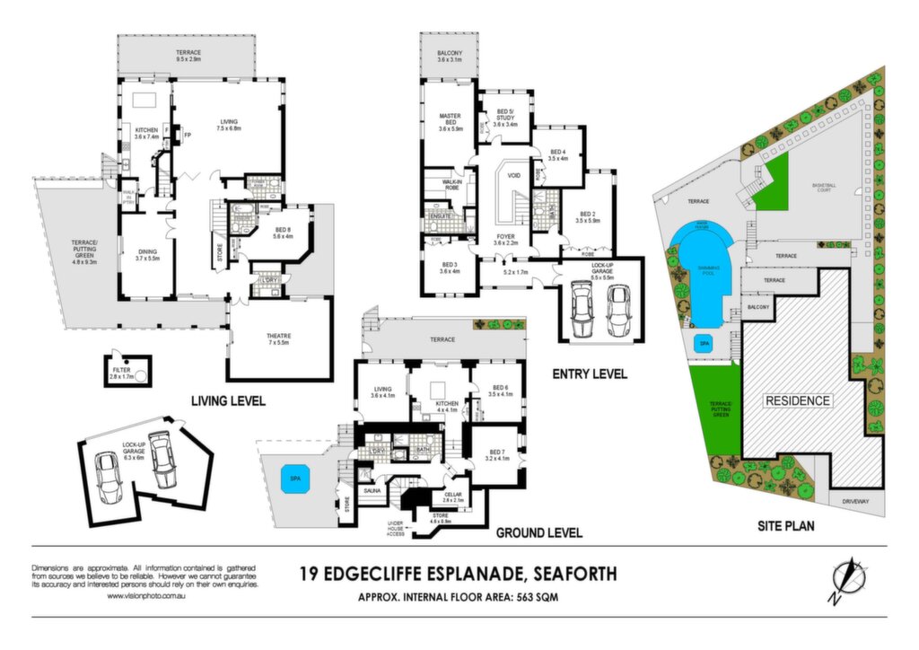 This grand family home is one to be treasured. It sits in a dress circle location on Edgecliffe Esplanade with spectacular views across Middle Harbour, Clontarf Beach, and out through The Heads. This majestic home features generous bedrooms, living and entertaining areas over 3 spacious levels and boasts a second street frontage on Seaforth Crescent. The top floor directly in from Edgecliffe Esplanade offers 4 bedrooms and a study, with the main living areas on the 2nd level which feature family and living rooms, a formal dining room, expansive balconies and a 5th bedroom with an ensuite. The lower level is a fully self contained 2 bedroom unit with a kitchenette and rumpus room with easy access to the pool and spa plus a paved basketball practice area. There is 4 car garaging with 2 car garages on both Edgecliffe Esplanade and Seaforth Crescent and extensive amounts of storage. This property is a dream home. Don't miss the opportunity to capitalise on its prime location and stunning views.