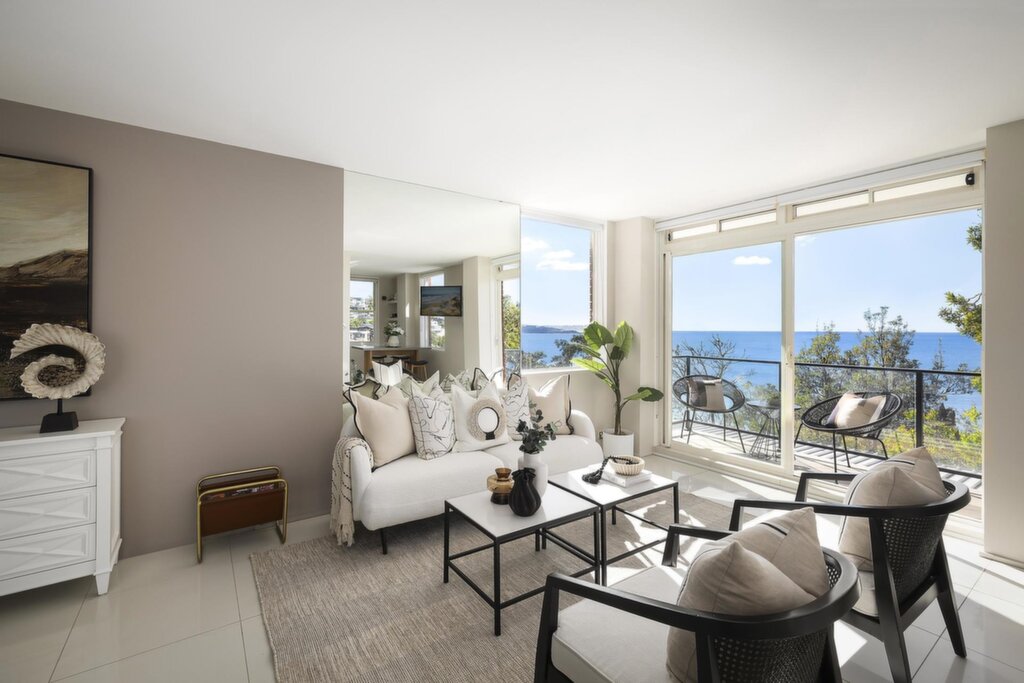Relax or entertain against a spellbinding ocean and coastal panorama Elevated views of surfers at Manly Point and swimmers heading to Shelly Beach Enchanting outlooks across Manly Beach and the northern coastline, with the chance to spot whales or dolphins Leaf-filtered vistas over Fairy Bower; Manly beachfront sparkles after dark Expansive, light-filled living area with floor-to-ceiling ocean views Glass sliders open to a northeast-facing oceanfront balcony capturing sun and sea breezes Separate dining area beside the kitchen, framed by a bright ocean-view window Sleek stone kitchen with Miele induction cooktop and stainless steel dishwasher Spacious main bedroom with built-ins and serene bay views to Shelly Beach Contemporary bathroom featuring a window with ocean views; internal laundry Versatile second bedroom or home office enclosed with glass concertina doors Only 370m to Manly Village, 480m to The Corso, 680m to Shelly Beach and 800m to Manly Wharf Located in an iconic landmark building; 88sqm on title; stair access to parking Lock-up garage; mirrored feature walls enhance natural light and amplify the views; tiled flooring throughout